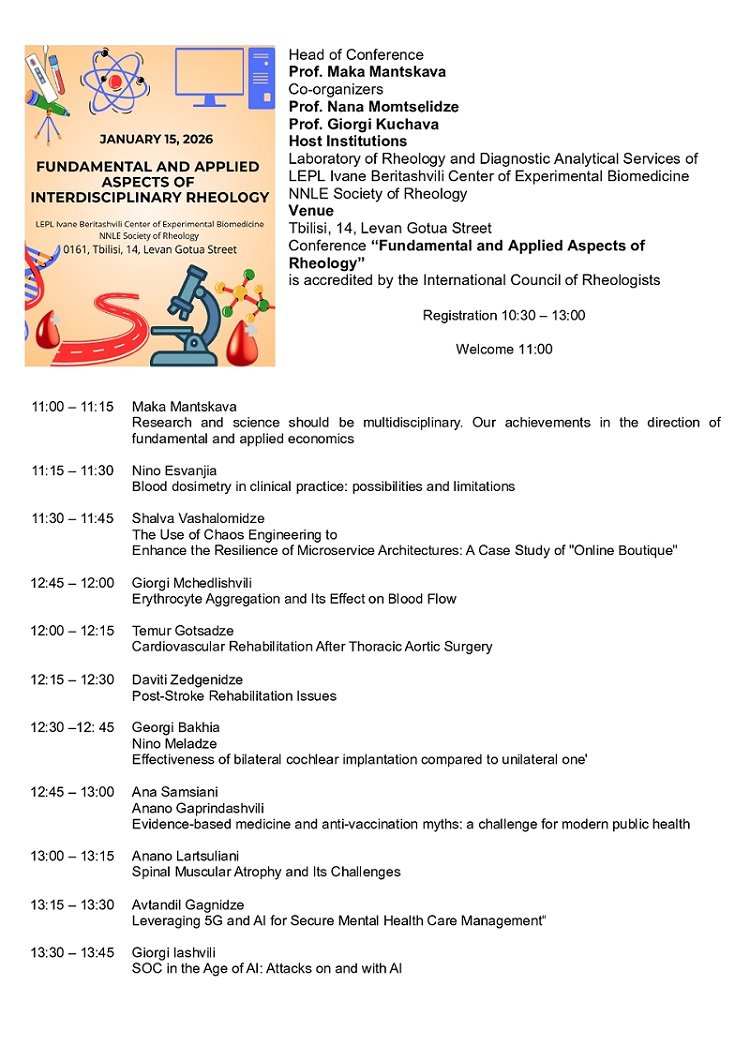 2026 წლის 15 იანვარს ტარდება კონფერენცია „რეოლოგიის ფუნდამენტური და გამოყენებითი ასპექტები“.